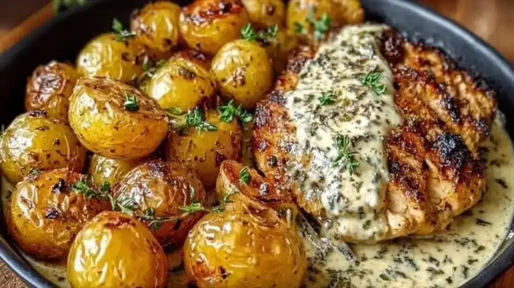 Creamy Garlic Chicken with Roasted Baby Potatoes